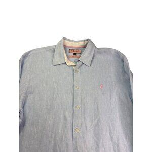 Thomas Pink Mens Long Sleeve Pure Linen Button Front Shirt Light Blue Size L