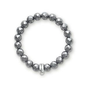 The Charm bracelet crafted from faceted, simulated hematite with 925 Sterling silver carrier is a timelessly-elegant item of jewellery. For its jewellery items, THOMAS SABO uses the highest-quality and most popular alloy in the jewellery sector: 925 Sterling silver. This is nickel-free and thus suitable for wear by allergy sufferers.