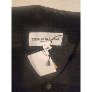 Thomas Sterling Black Polo Cartigan Shirt Sweater Short Sleeve Knit Button Up. Condition is New with tags. Shipped with USPS Ground Advantage.