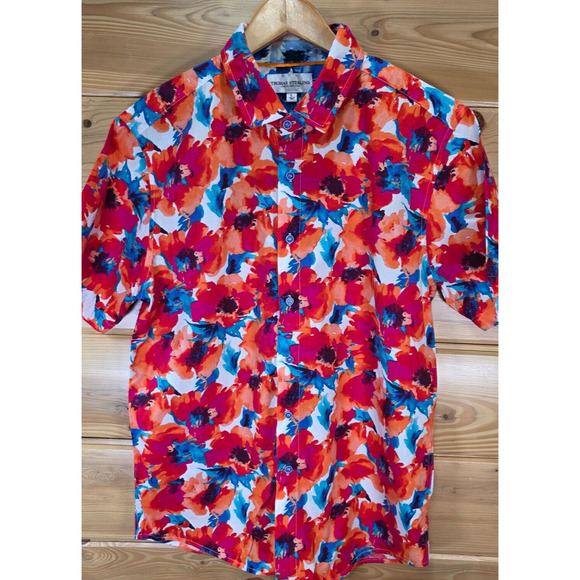 Thomas Sterling Floral Multicolor Vibrant Shirt Men Large