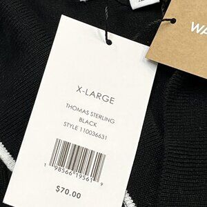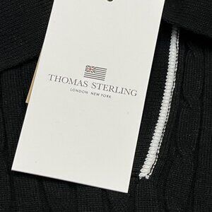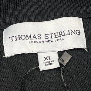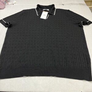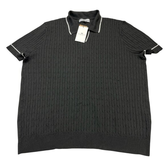 Thomas Sterling Sweater Top Men XL Black Cable Knit Short Sleeve Collared Casual