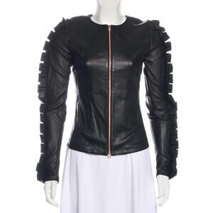 Thomas Wylde Long Sleeve Black Leather Statement Jacket, Size XXS (MSRP $2,375)