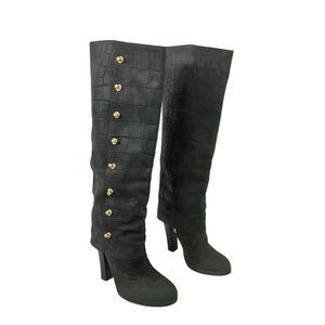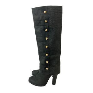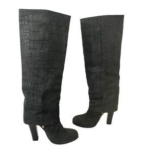 Thomas Wylde Womens Size 7 Black Croc Leather Foldover Studded Boot