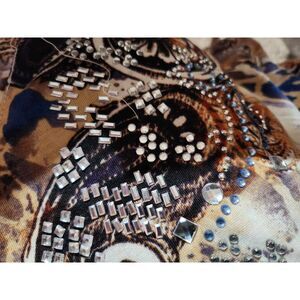 Make a statement with elegance in this Animal Print & Paisley Design Embellished Top. It's guaranteed to spark conversation. The swirling teardrop shapes with curved flourishes in the paisley designs evoke a sense of movement and refinement, while the animal print features spots and rosettes, infusing a hint of wilderness and boldness into the design.