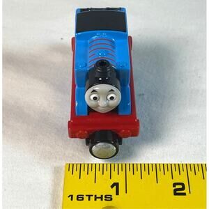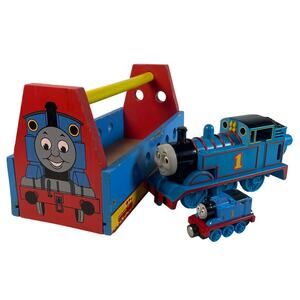 Lot includes: (1) Thomas the Tank Engine Take N Play die cast blue train #1. Magnetic ends and approx 3 Inch long. 2011 Mattel / Guillane, limited #CBL75. (2) Thomas train whistle from Schylling - Vtg 1992. (3) Thomas (Guillane) 2004 wooden tool box from Schylling. Clean pre-owned condition. Some light paint wear on die cast train, but nothing significant. Whistle has a few scuffs, especially around the mouth piece and some of the stickers have some edge rolling wear. However, it sounds great! Tool box has paint wear on edges. No tools included. All are loose with no packaging. Review photos carefully for all details.