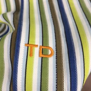 • front of shirt has seams from shoulder to hem that has a different print which makes this very unique (see pic)