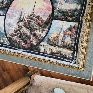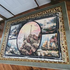 Thomas Kinkade Christmas Blanket Throw Woven Afghan Cross, Church, Sleigh 64x45"
