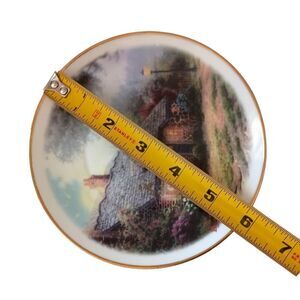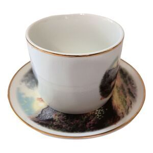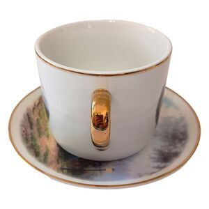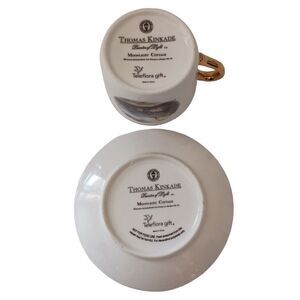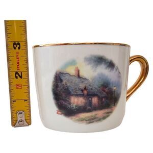 Thomas Kinkade Moonlight Cottage Tea Cup Saucer Vase Teleflora Gold Trim Set Ceramic. Condition is pre-owned with no chips or cracks. Made for teleflora. Please see all photos for detailed condition.