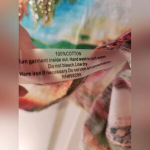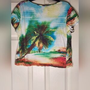 Thomas&Olivia XL Multicolored Beach Print Shortsleeves Beaded 100% Cotton Women’s Top