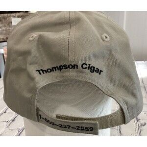 Thompson TUSKER Imported Cigars Adjustable Baseball Cap Khaki / Black. LNWOT. Please reference attached pictures for Logo Patch, Embroidery on back and band adjustment, colors and condition.