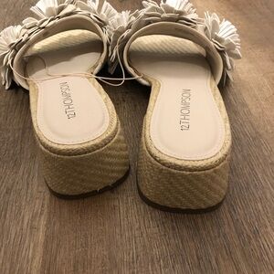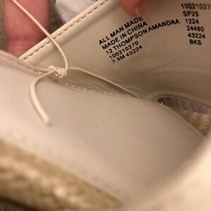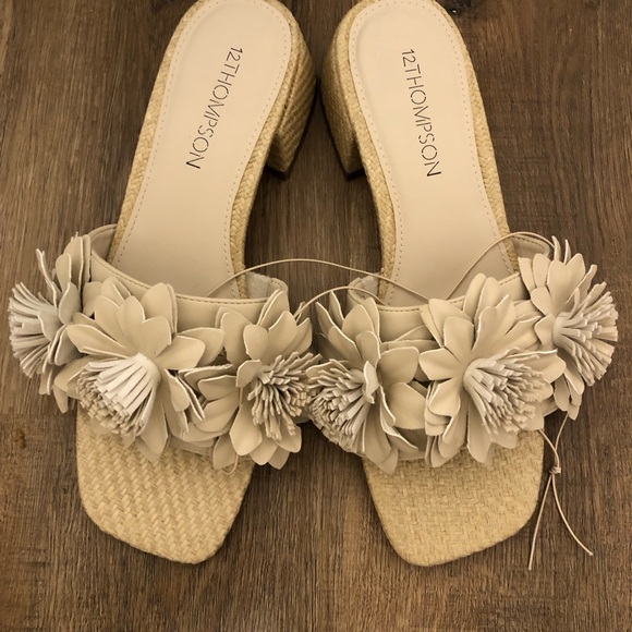 Nice NEW nude sandal with short heel. NEW ! Comfy. Elegant and casual. Versatile. ! ! Experience the perfect blend of style and comfort with Thompson's cream sandals, featuring a charming ruffle detail across the top. Their versatile design ensures they pair effortlessly with a variety of outfits.