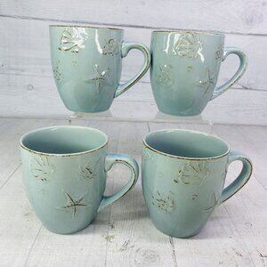 Thomson Pottery CAPE COD Embossed Seashells Stoneware 10.5oz 4"T Cups Mugs Set 4
