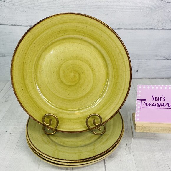 Thomson Pottery Green Swirl Speckle Brown Stoneware Dinner Plate Set of 4