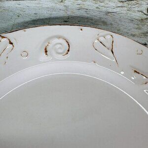Thomson Pottery HAMPTON Seashells Embossed Rustic Off White Dinner Plates Set 4