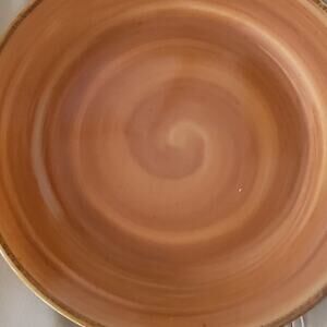 These Thomson Pottery salad plates are an yellow, brown swirl pattern.