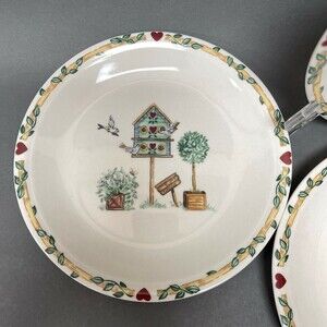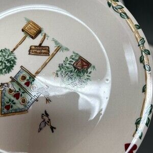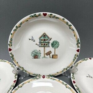 Thomson Pottery Salad Plates Birdhouse Birds Heart Vine Border 7 5/8" Lot of 4