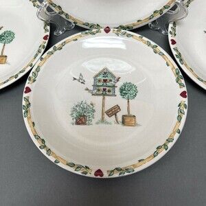 Thomson Pottery Salad Plates Birdhouse Birds Heart Vine Border Lot of 4