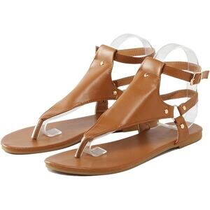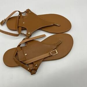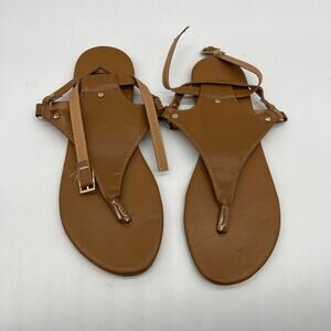 Thong Sandals Open Toe Shoes Flat Ankle Buckle Brown Size 10US / 42CN
