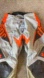 Thor motocross pants in gray and orange. Durable and stylish for racing.
