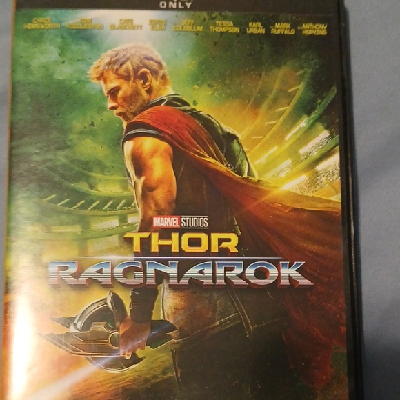Thor Ragnarok DVD with vibrant cover art. Features Thor in action.