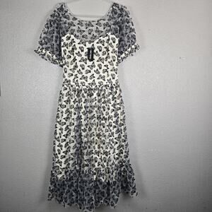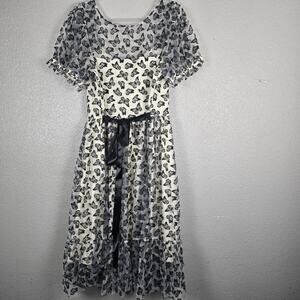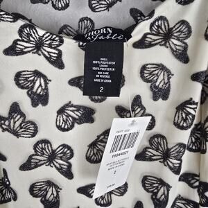 Thorn & Fable Ivory & Black Butterfly Glitter Mesh Dress Size 2