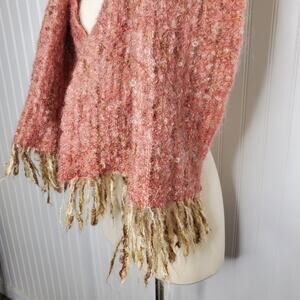 Thornhill Hand Weavers Pink Wool Scarf Fringe Soft Handmade 70s England Soft