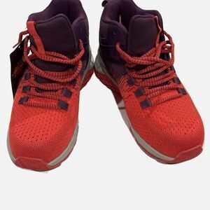 High-top lace-up style sneakers.