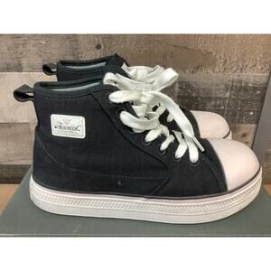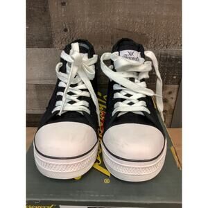 Thorogood Men's 6.5M Black White Canvas Mid Safety Toe Work Shoes Lace Up LB1-21