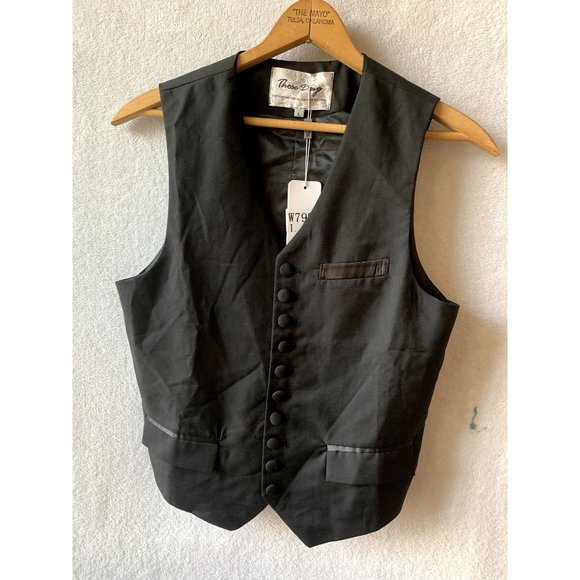 Those Days Black Vest with Satin Lining and Adjustable Cinch NEW WITH TAG Size L