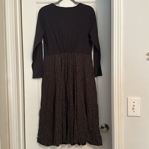 Thought brand polka dot grey long sleeve v neck panel midi dress size 14