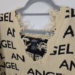 Thrashed Distressed Look Just Polly Sweater ANGEL Tan Black XL Grunge Punk Vneck