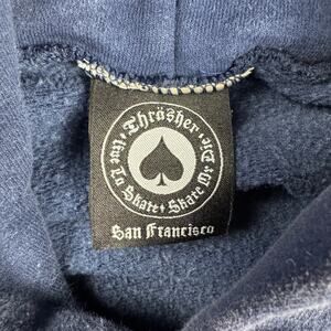 Thrasher Flame Logo Hoodie Men’s Small Navy Blue Skate Pullover Y2K Style