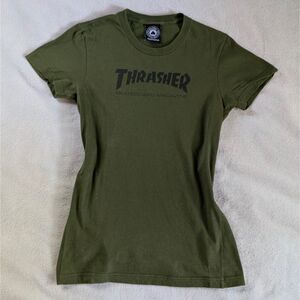 Thrasher Logo Graphic T-Shirt Women's Medium Dark Green Fitted