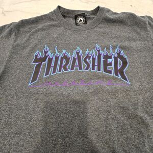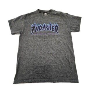 Color: Heather gray with blue/purple flame Thrasher logo on front