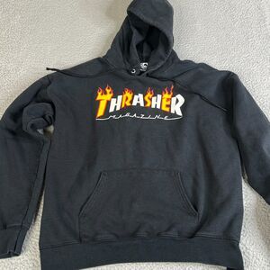 Thrasher Magazine Sweatshirt Mens M Black Flames Sweater Y2K Punk Emo Skater