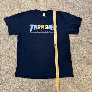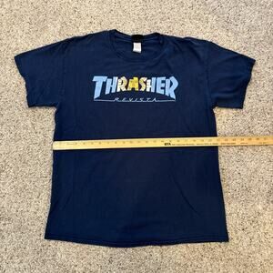 Thrasher Revista Graphic T-Shirt Navy Blue Large Skateboarding Mens Y2K