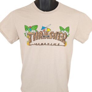 Thrasher Magazine T Shirt Mens Size Small Beige Tiki Skater Skateboarding Streetwear