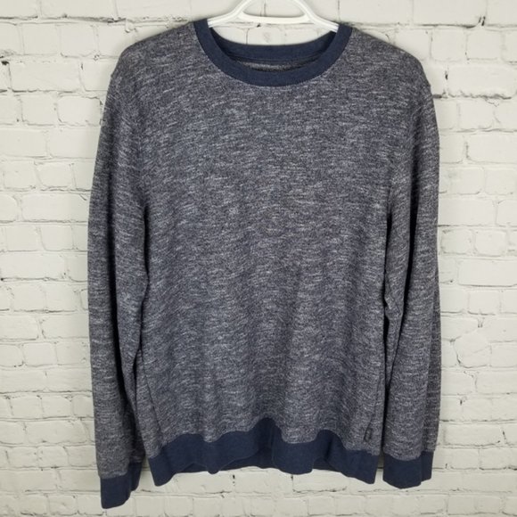 Thread 4 Thought heathered blue ringer crewneck long sleeve thin sweatshirt. Sustainable & ethically made brand. Pit-to-pit measurement is approximately 22