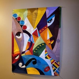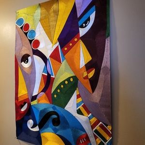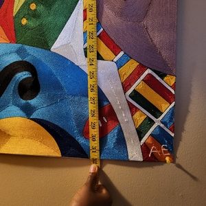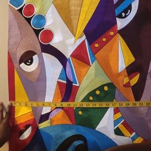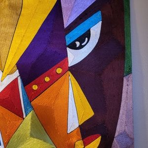 This piece of artwork is made in Ghana from thread. Very well made and just waiting for someone to frame it and beautify any space they choose to. Could be your living room, bedroom, office or hallway. Size is 24 by 32 inches.