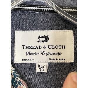 Thread & Cloth Shirt Mens XL Teal Floral Print 100% Cotton Short Sleeve Casual