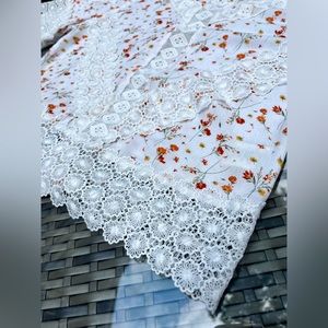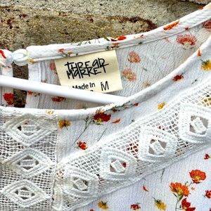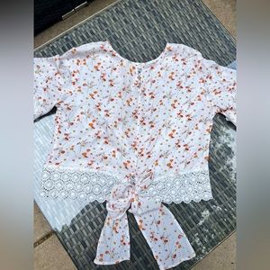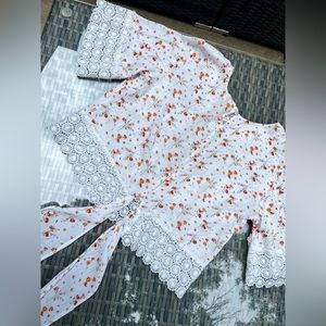Beautiful Thread Market floral top. Size M. Top is cropped and has tie in the back. Lace on sleeves and throughout the front and back. Amazing piece!