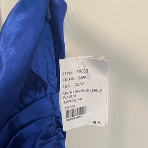 Thread One-Shoulder Draped Satin Maxi Dress In Sapphire Size 22