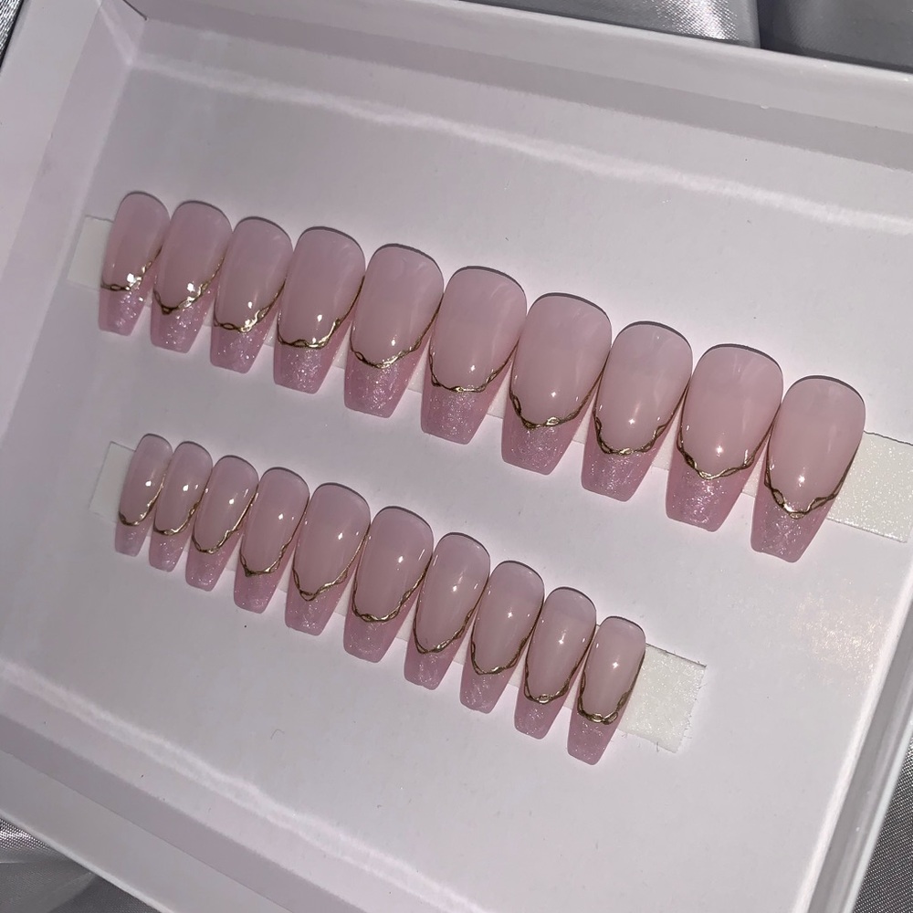 So pretty and feminine with an iridescent sheer pinky nude vibe. Medium length coffin