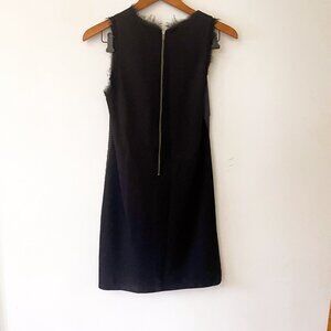 Gorgeous mini sleeveless dress. Black with gold polka dots and statement bow across the bust. Feather fringe at neckline.