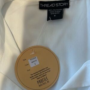 This item is a white shirt that buttons down the front with both sides open. This item is a size small.