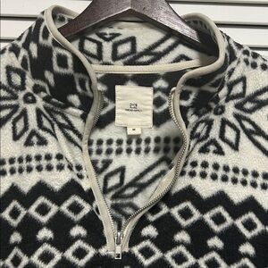 ✨Stylish black and white pullover with a geometric Nordic pattern. Features a quarter zip and front pocket. This is a thinner fleece jacket.