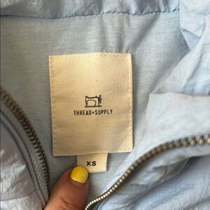 Experience warmth and style with the Thread & Supply Blue Puffer Vest, featuring a high collar and quilted design. This versatile piece is perfect for layering, offering a sleek and practical solution for cooler days.