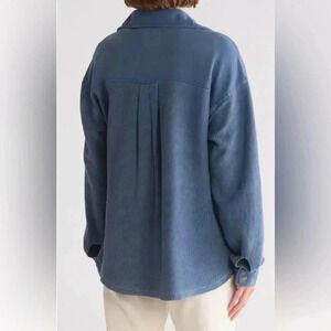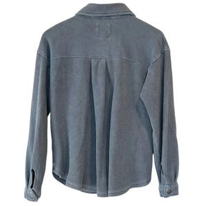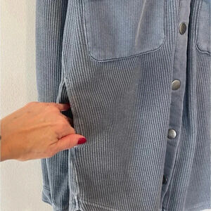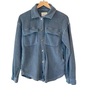 Thread & Supply Blue Ribbed Shacket, Snap-Up Closure, Collared, Pockets, Size XS