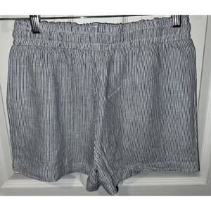 The Thread & Supply Blue & White Striped Mali Shorts are a stylish and comfortable option for women in size small. These pull-on shorts feature a navy and white striped pattern, made from a blend of rayon and linen for a breathable feel. The mid-rise waist and 3-inch inseam provide a flattering fit, while the elastic waist and adjustable drawstring ensure a secure and comfortable fit. Perfect for casual occasions or summer travel, these shorts are lightweight and easy to care for with a hand wash only garment care instruction. They’re brand new, with tags attached, from a clean, smoke-free home.