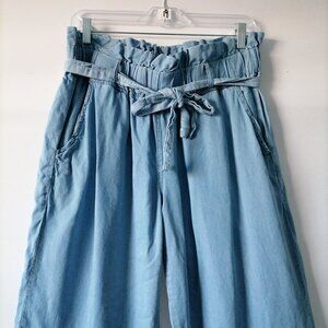 Stylish wide leg pants. Soft fabric with a relaxed fit. Features a tie waist for adjustable comfort.